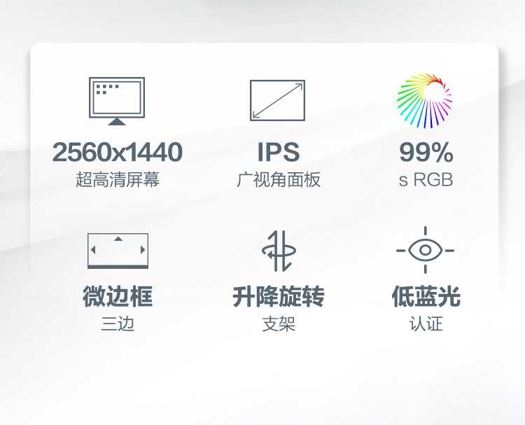23.8英寸 2K IPS 升降旋转 微边框 低蓝光爱眼 显示器 显示屏(带HDMI线)