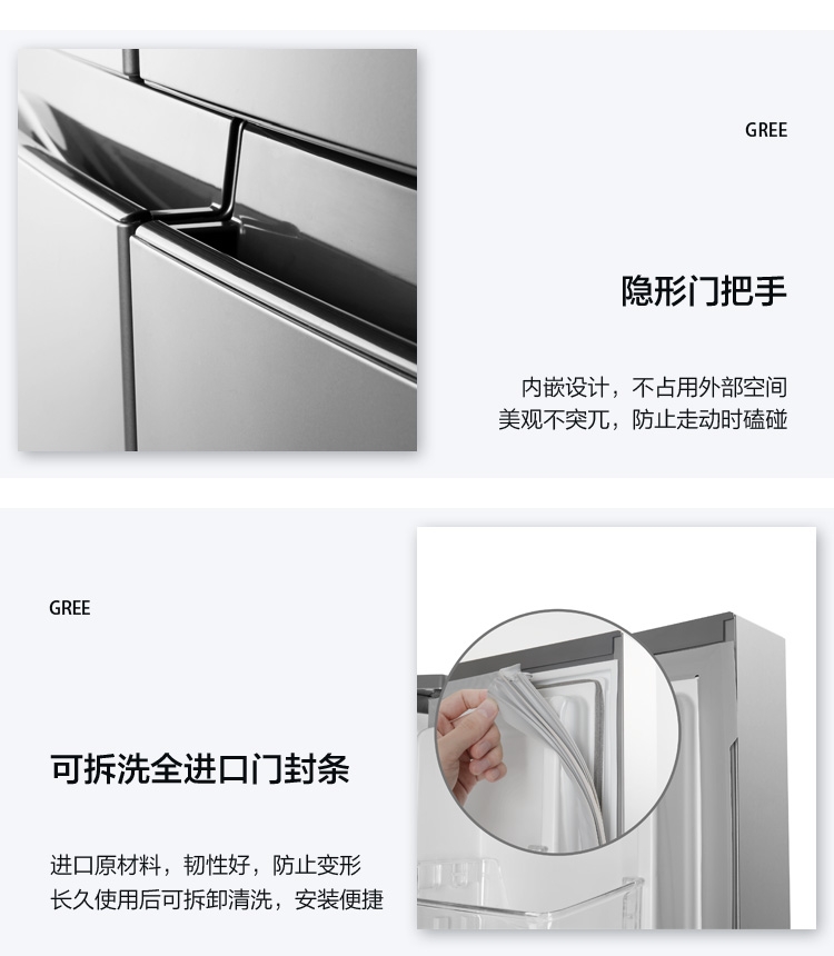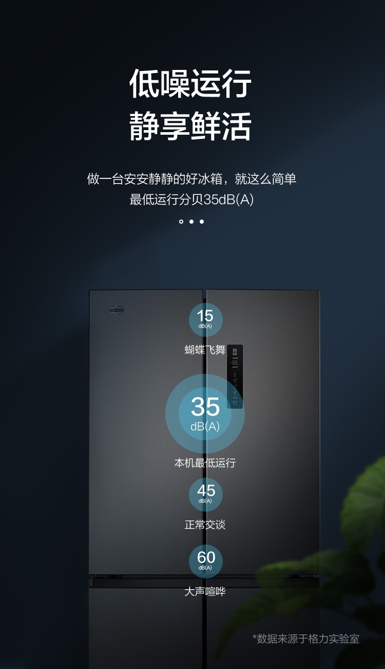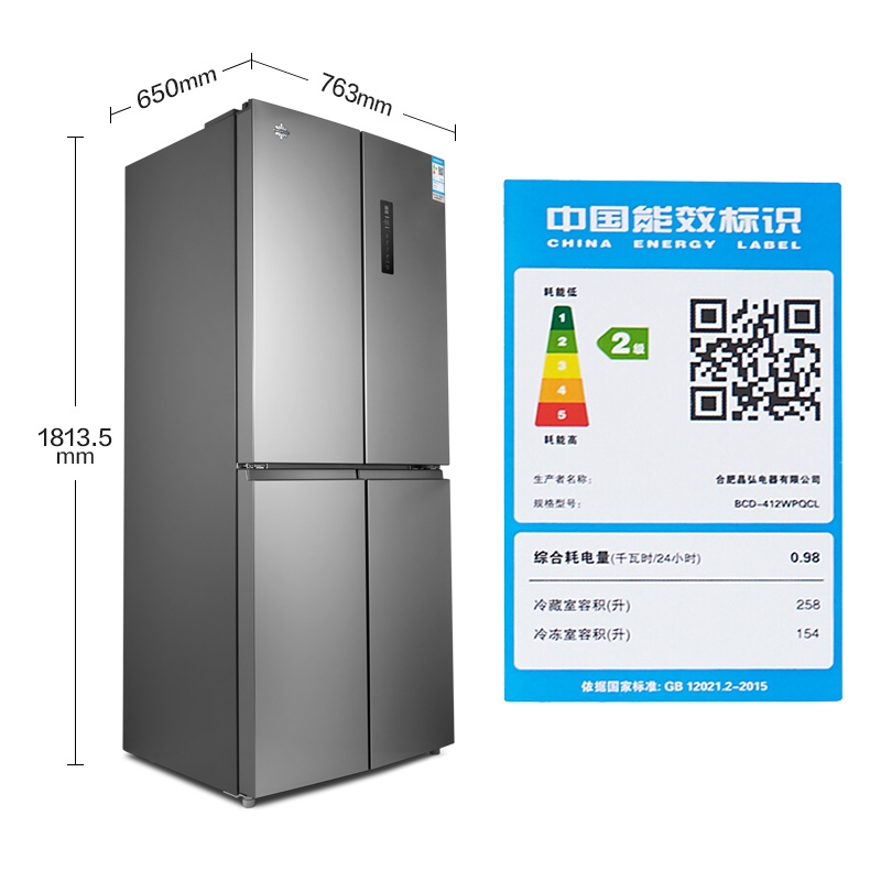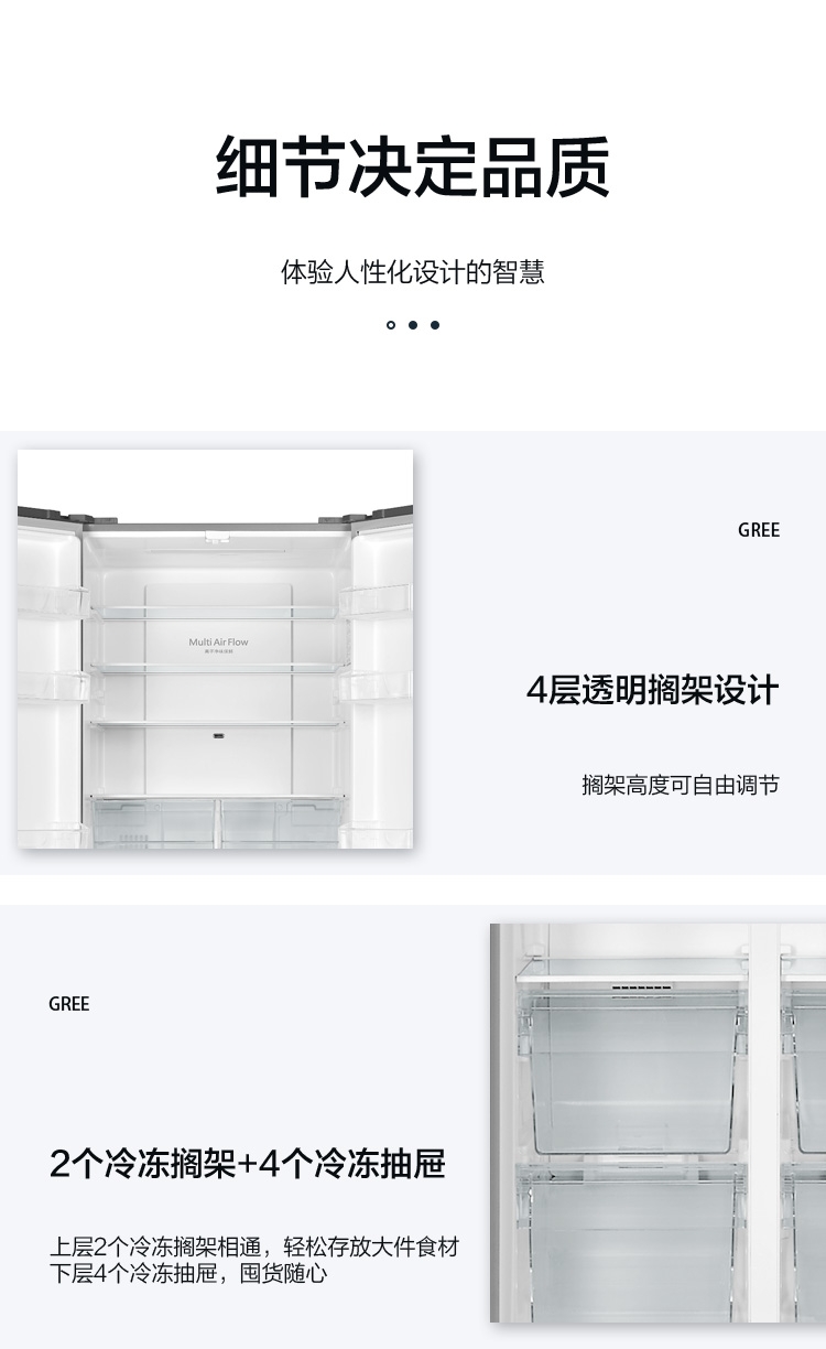 晶弘412升变频风冷十字对开门纤薄电冰箱 深冻锁鲜 家用 离子抗菌净味