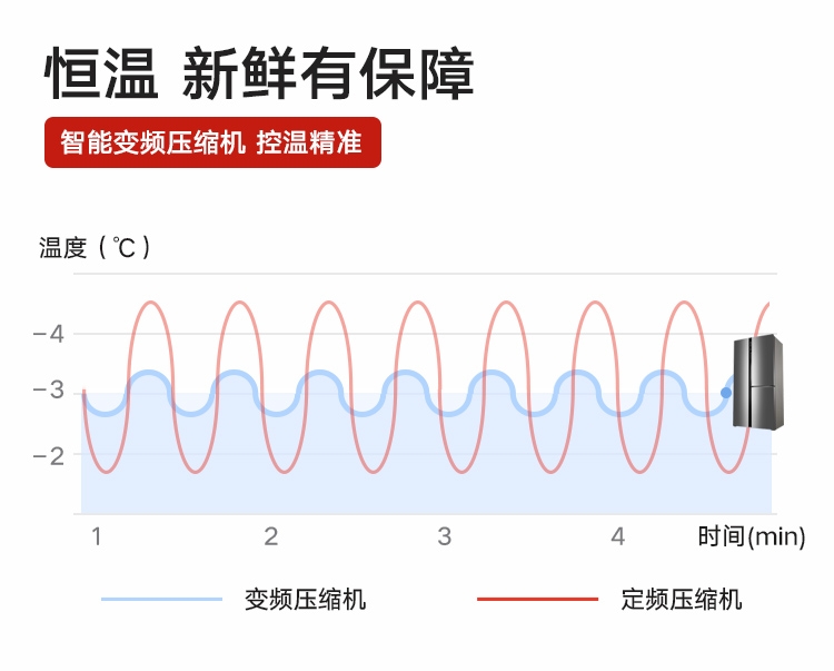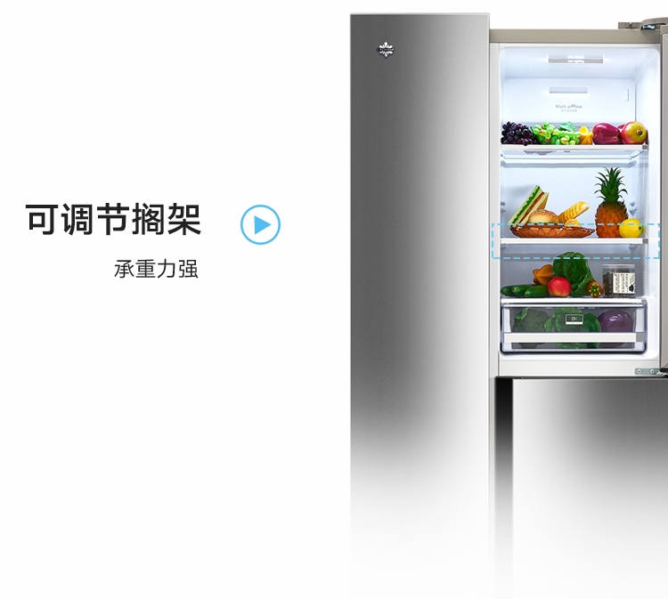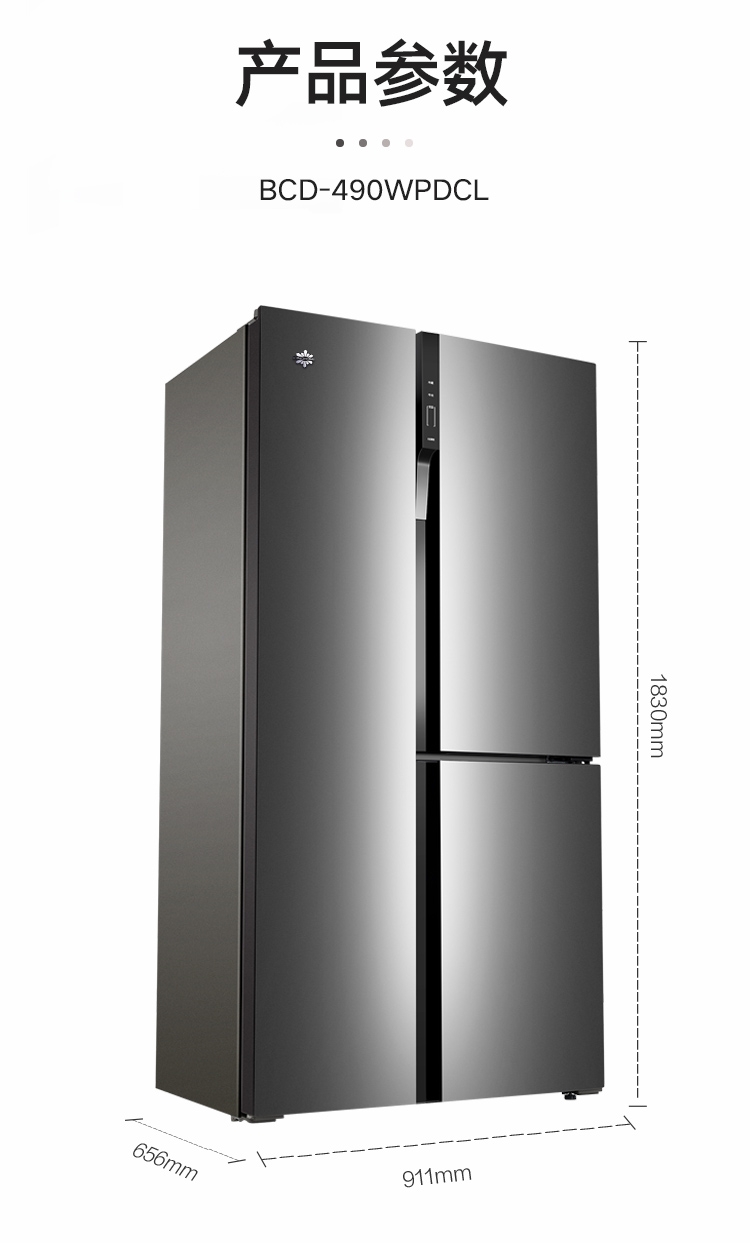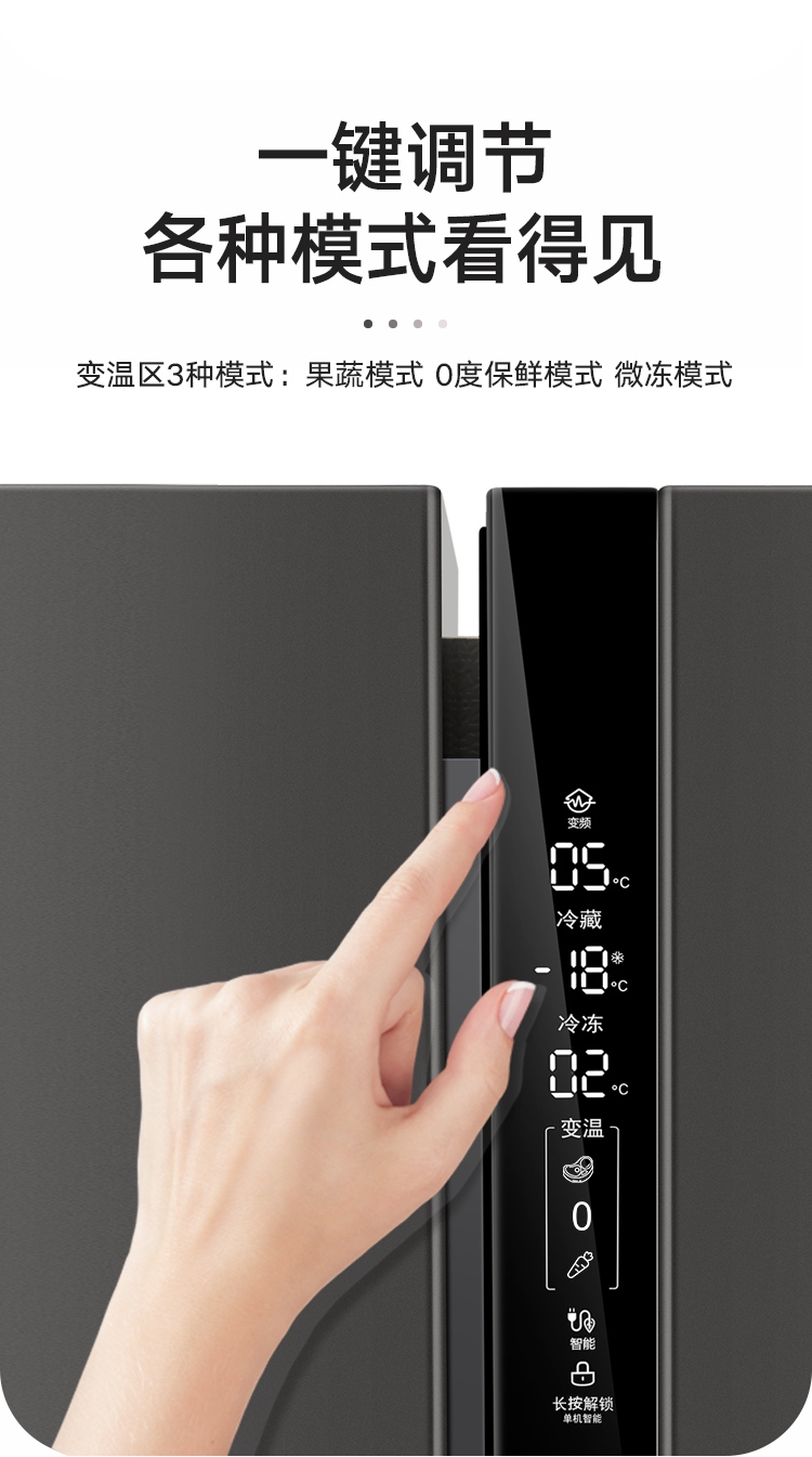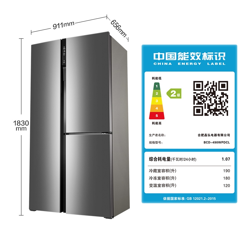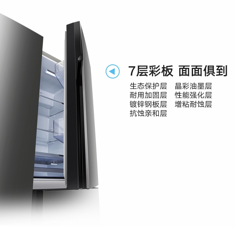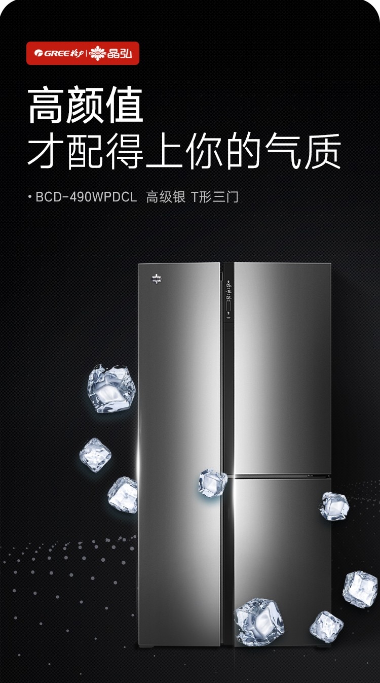晶弘490升变频风冷无霜T字对开门纤薄电冰箱 底部散热 离子抗菌净味