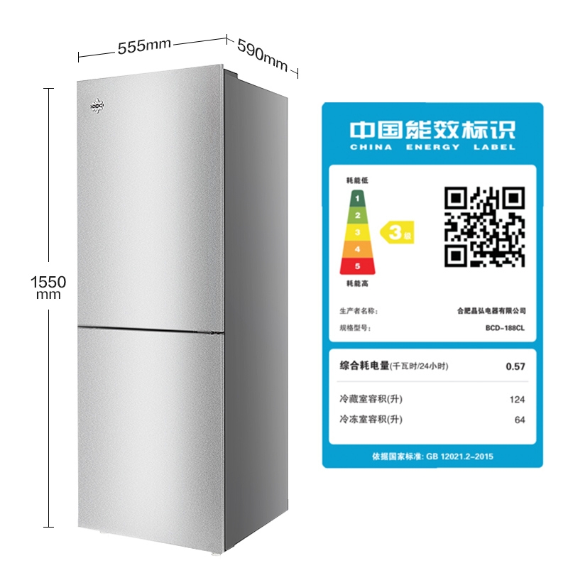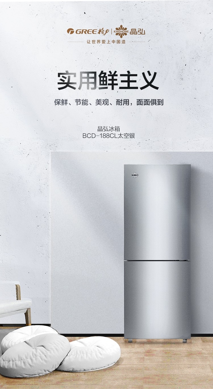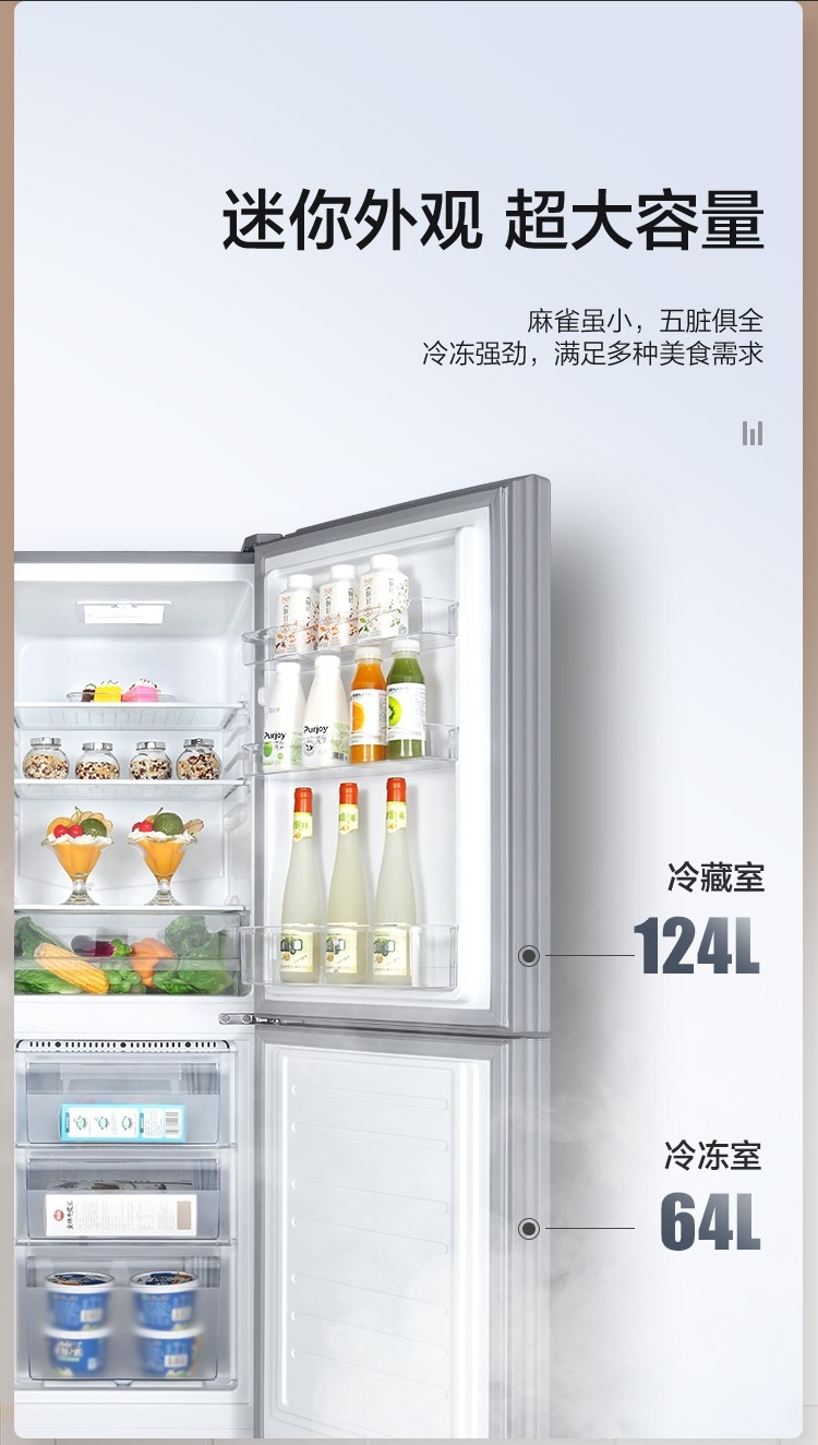 晶弘188升迷你小型两门电冰箱 瓜果水润 节能低噪 宿舍租房小巧不占地